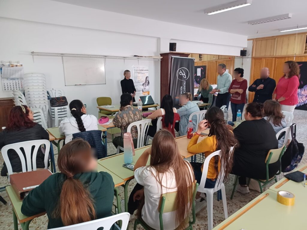 Nuestra compañera Caty»Tecnica de orientación del programa T-acompañamos inserción de Jovenes» de la Asociación Se, Sitio de encuentro, ha estado con los concejales del ayuntamiento de los Gallardos presentando el programa de Empleo y Formación, informando al alumnado del servicio de orientación laboral y apoyo a la inserción en el que pueden participar, tras la finalización de la formación que están recibiendo el próximo 2 de junio.